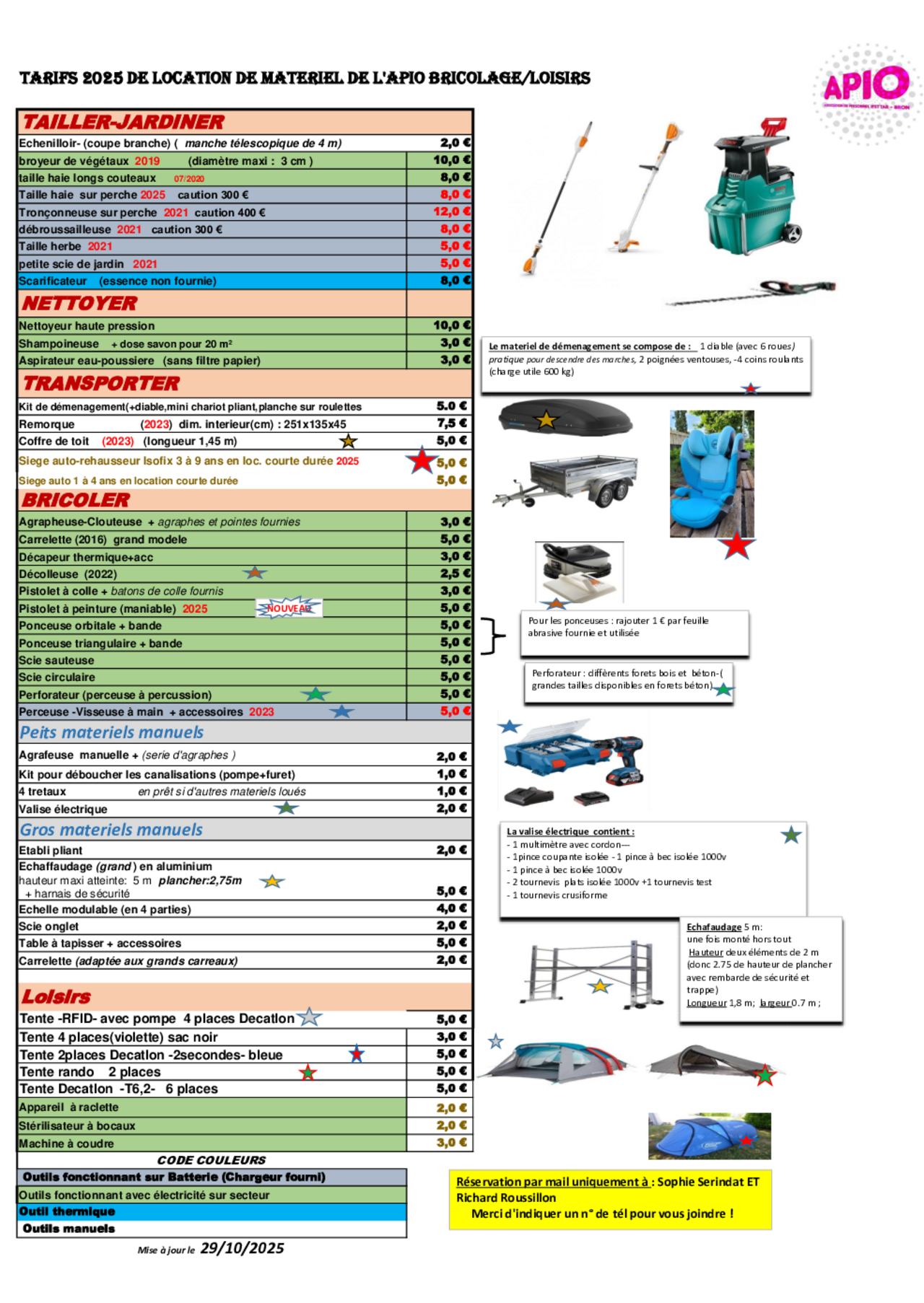 Sont toujours disponibles à la location : aspirateur de chantier, perforateur, carrelette électrique, diverses ponceuses, mais également, échafaudages légers pour tous types de travaux, décolleuse à papier peint (rachetée en 2022)